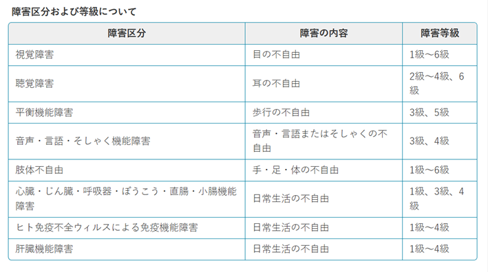 障害の種類や程度により1級から6級まで区分されており、等級に応じて各種の福祉サービスを利用することができます。