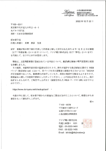 フクダ電子社にFAXで文書を送付、電話で問い合わせ、回答の内容を、弁護士 高野康彦 先生に相談。