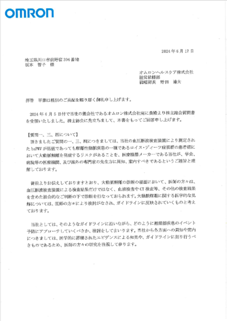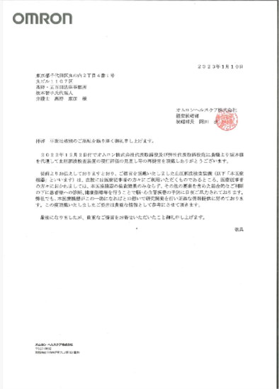 オムロンヘルスケア社 回答 PDF⑤参照